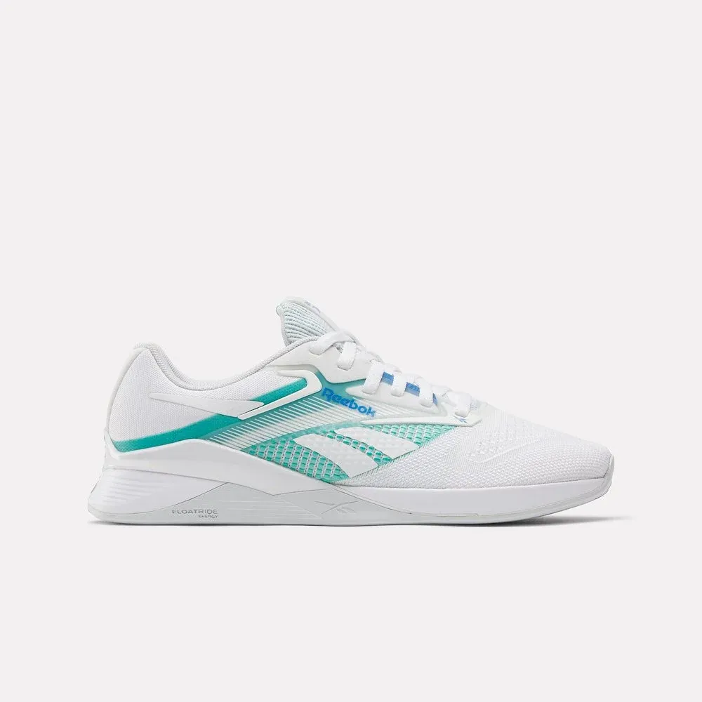 Las Reebok Nano X4 White Footwear White-Unleashed Green-Kinetic Blue combinan el rendimiento que necesitas en cada WOD con un diseño limpio en blanco y detalles en azul y verde. Su upper transpirable mantiene tus pies frescos, mientras que la suela de gran tracción te da seguridad en cada movimiento.